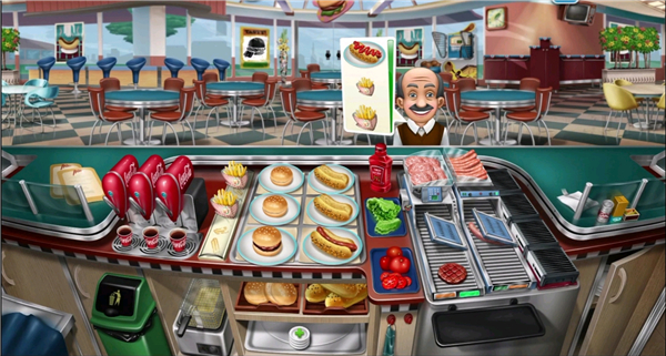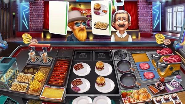 注:推荐购买自动烹饪机,可以帮你自动完成绞肉工作,摇滚酒吧和快餐店卖的东西差不多,但是会更难一些,是城市篇第三难的餐厅,最后一关需要很多金币,建议先解锁额外顾客。