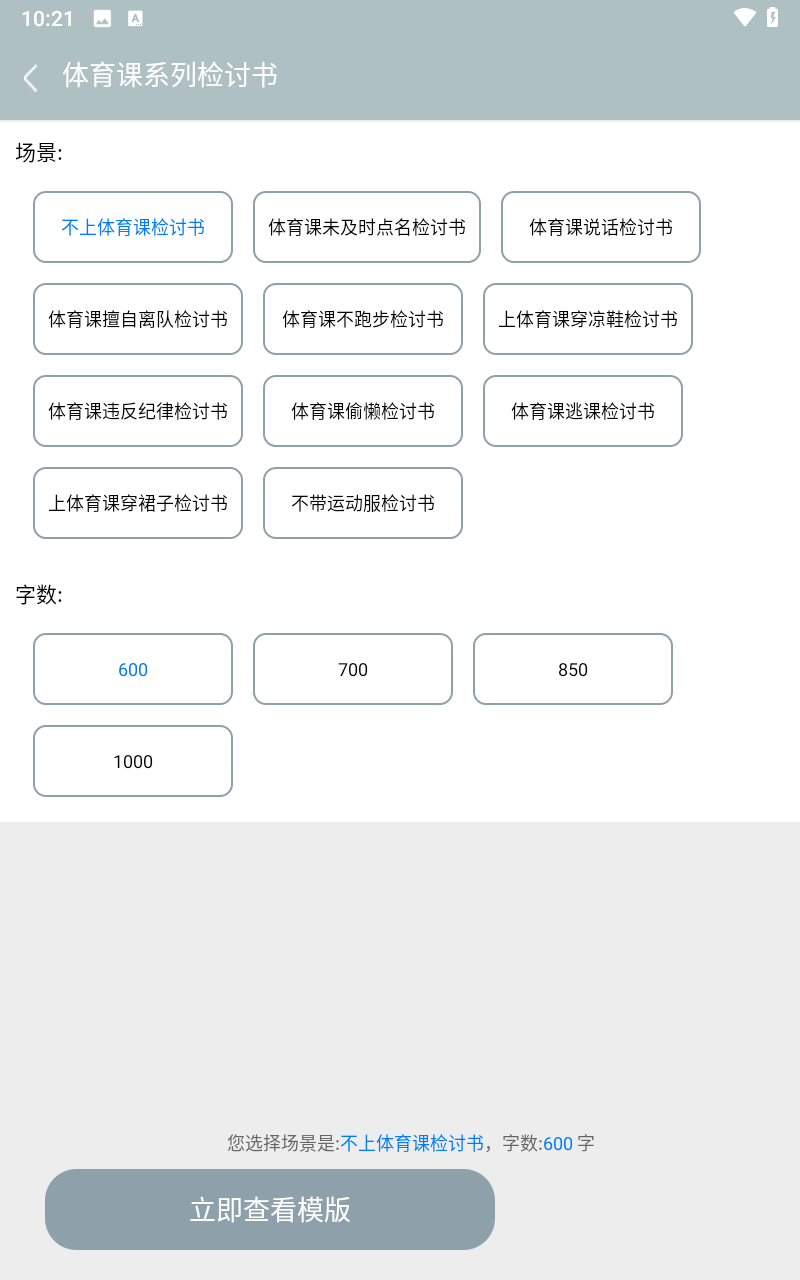 大家在平台中只要手动将检讨书的题目和字数写好即可一键生成。