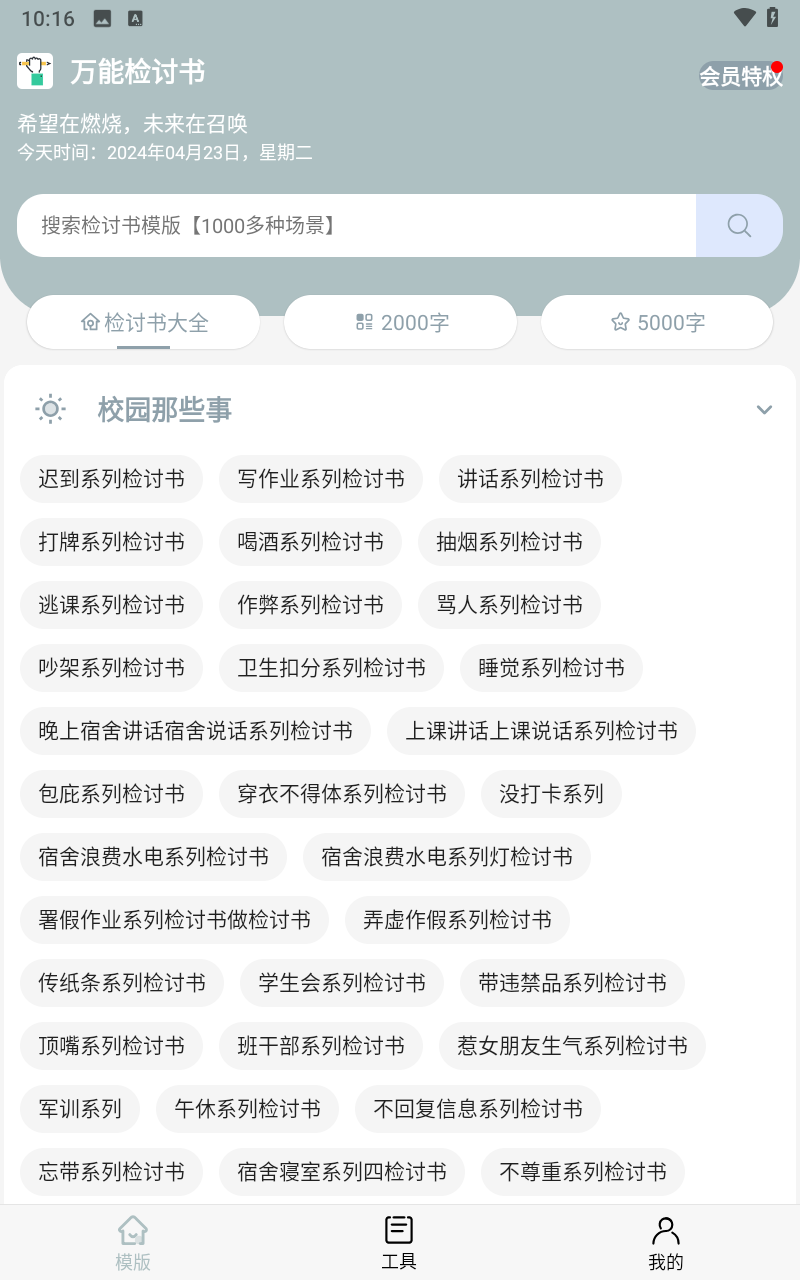 全能检讨书这是一款相当有特点的写作工具软件,通过这款软件我们可以轻松写出各种不同题材类型的小作文活检讨书等等。软件还具备智能识别功能,能根据你输入的内容自动调整,提供多种模板供你选择,完全符合个人需求,让我们不用再苦思冥想怎么写内容了。