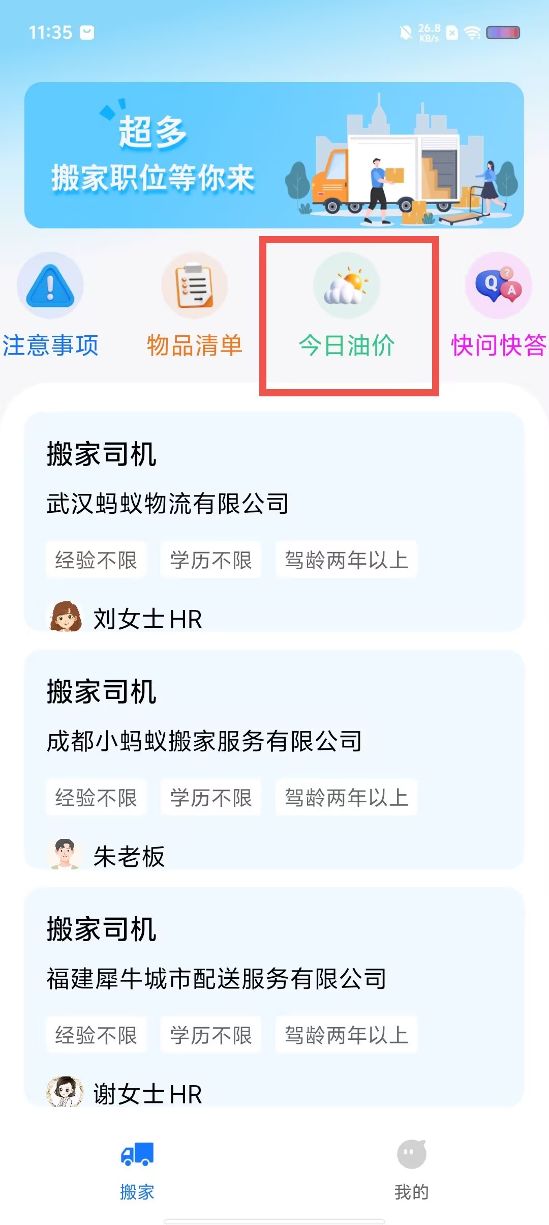 整合优质搬家司机资源,用户可查看任职要求、岗位职责及福利待遇,快速找到合适的搬运帮手。