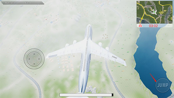 4、我们先乘坐飞机,找到想去的地方,点击右下角跳伞