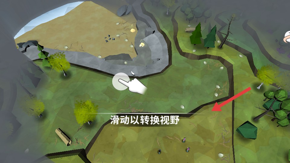 2、按照提示【滑动以转换视野】,调整视角来观察不同区域,便于找到合适的营地位置。