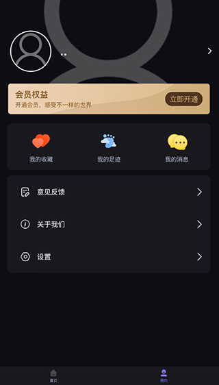用户点击我的即可进入个人中心,可以查看自己的收藏以及足迹和消息,也可以查看软件信息和账号信息。