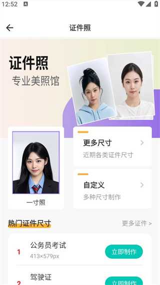 证件照制作:可以让你通过软件轻松制作证件照,用户就可以制作不同类型的证件照了;