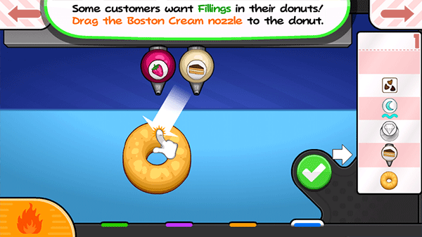 2、体验十分欢乐的游戏挑战,卡通风格的游戏画面,一起制作美味的甜甜圈吧。
