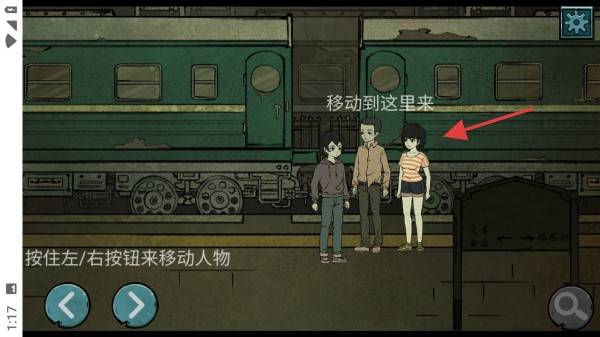 1、根据提示,按住左右按钮移动人物,让角色到指定位置,推进剧情发展。