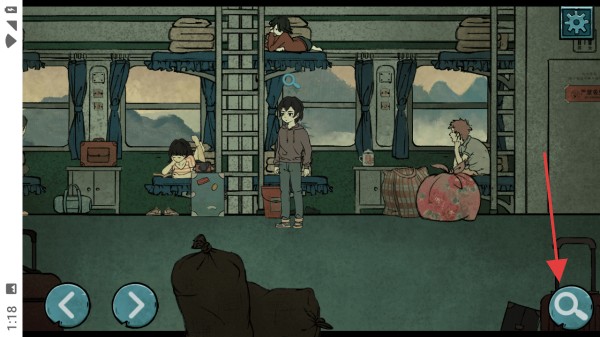 4、进入车厢后,点击右下角放大镜,探索场景物品,收集线索或道具。