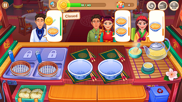 简化的亚洲美食和食谱,可在具有时间管理游戏功能的餐厅中快速烹饪。游戏有数百个关卡,易玩难精通。