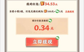 种田游戏,我的红包奖励很小,开始时订单奖励还可以,勉强凑到了0.3元。