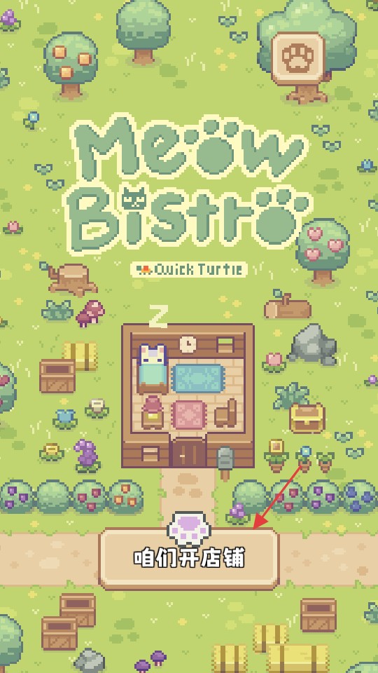 1、游戏初始点【咱们开店铺】,开启猫咪餐厅经营。