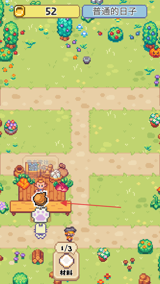 3、市场场景中,与摊位NPC互动,收集材料推进经营。