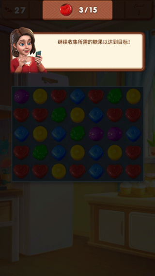 5、进入关卡,匹配3个相同颜色的糖果来收集他们,完成挑战。