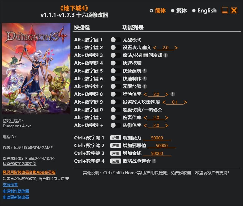 地下城4修改这款游戏修改器等于是开了无敌模式,开了之后在游戏里就所向披靡;还有无限经验,能让角色快速升级。有了这些功能,游戏里的那些挑战都变得简单多了,咱们就能一门心思享受玩游戏的快乐。而且,还能让咱们更早地把所有关卡都通关。