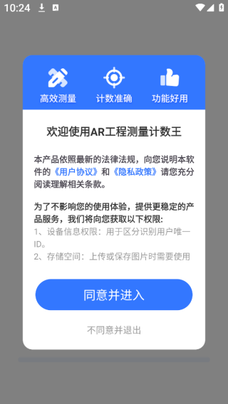 1、首先下载软件,进入的时候需要先同意隐私权限。