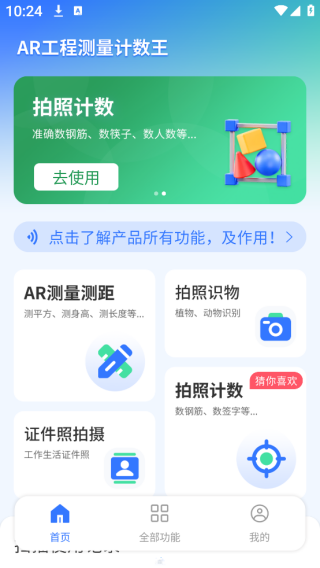 2、进入首页可以看到丰富的功能,首页上的【拍照计数】可以实时免费使用。
