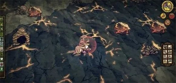 前期:武器可以用长矛过度。至于防具的话,刚开始猪很难打而且也很难找,所以遇到猪后最好搞4个怪物肉让它强制变身,稳定获取一个猪皮拿来做雨伞/猪皮帽。或者在10天左右等第一次月圆夜里去杀疯猪,打2走1,循环几次就行。