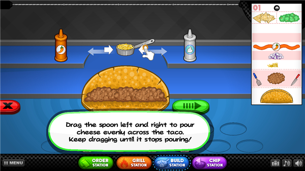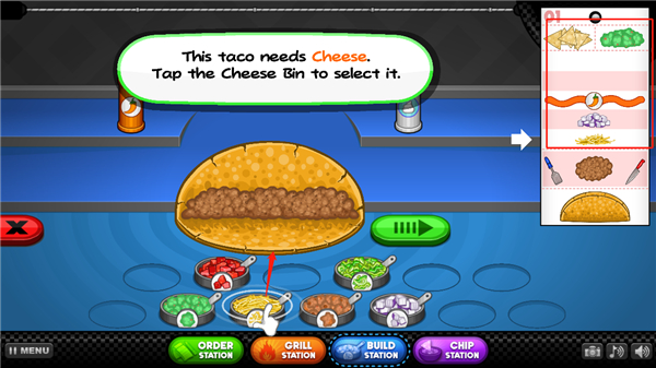 3、顾客会对他的塔可有不同的请求,你得依据顾客的请求来制造哦。