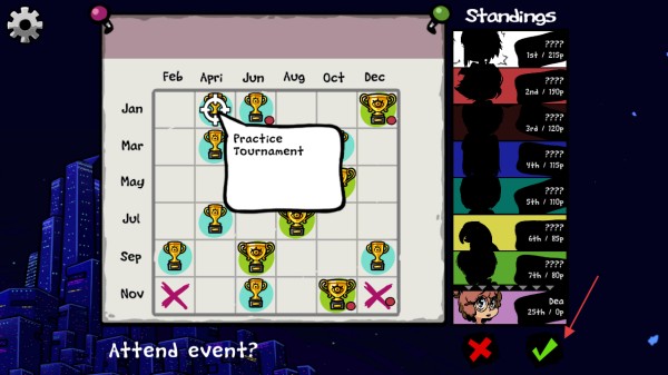 4、遇到【Practice-Tournament】,选绿色对勾【✔】,参加赛事,积累积分提升段位。