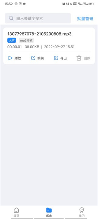 1、进入软件后,进入乐库,或是选择其他你想要转换的音频;