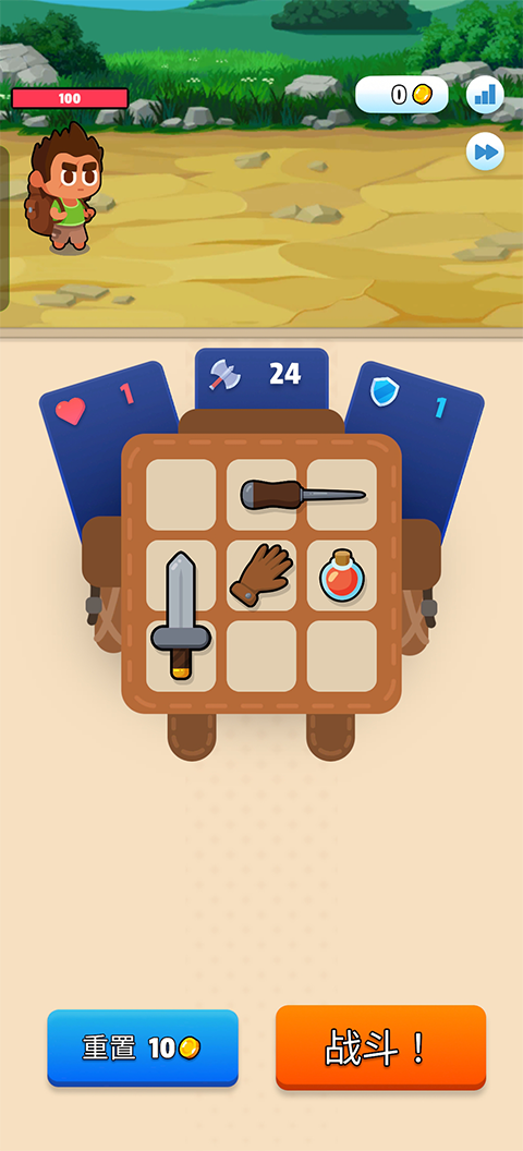 2、然后将所有道具武器都放到背包里面,就可以进入战斗了。