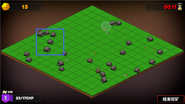 玩家只需点击开采区域,游戏将生成镐自动开采周围内的所有岩石