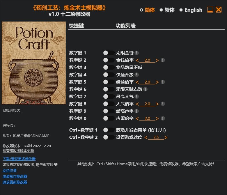 药剂工艺炼金模拟器修改器简直是个游戏神器,好玩又实用,它给玩家准备了好多厉害的功能,比如能让金钱翻倍、拥有花不完的钱,还能让声望直接飙到最高。有了这些功能,玩家在游戏里遇到啥难题都不怕,轻轻松松就能搞定。