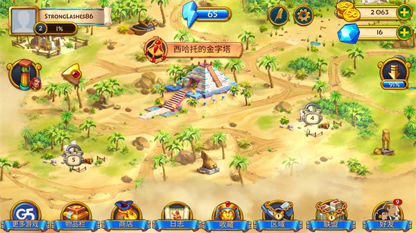 埃及的珠宝这款游戏是一款可以把三消闯关和古埃及造城玩出了新花样,你不仅要疯狂连消彩色宝石,还得靠消除炸开地下岩层,挖出黄金、圣甲虫、法老雕像等稀有材料,用来修复被沙尘掩埋的千年神庙、金字塔和宫殿各种建筑物。