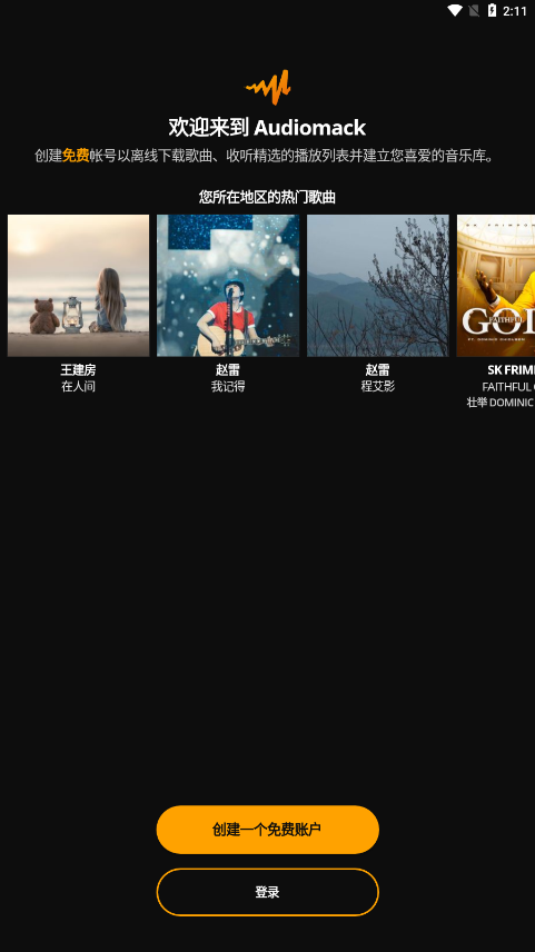 1、下载安装audiomack安卓版app,打开APP注册登录;