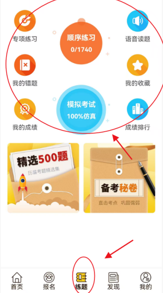 3、点击练题,提供专项练习、我的错题、我的成绩、语言读题等多个功能,让您更好的进行练题。