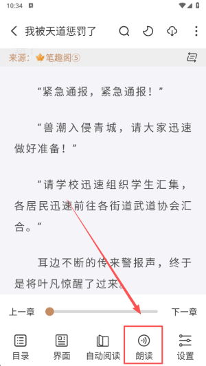 4、点击“朗读”选项,享受听小说的乐趣,让声音带您进入另一个世界。
