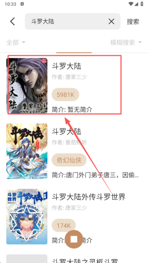 2、从搜索结果中挑选一个符合您期待的作品,以便更好地享受阅读体验。