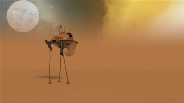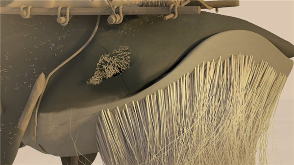 3、为了找到新的海洋生存下去,老鲸鱼被迫长出两条腿来行走,走出原先的海洋。