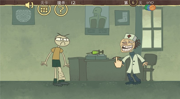 第八关:先点击主角的头,头掉下来后再次点击头,即可过关。