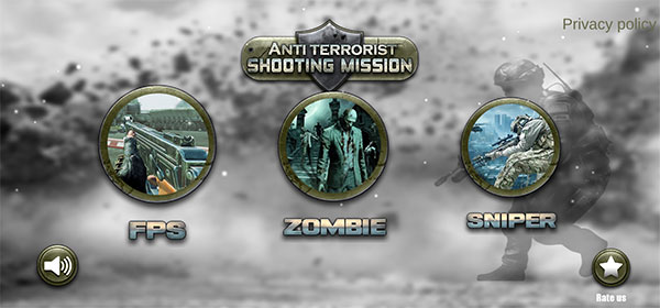 1、在本站下载安装好山地狙击手射击最新版后,打开进入,主页三个选项分别是关卡模式、丧尸模式以及单人模式。