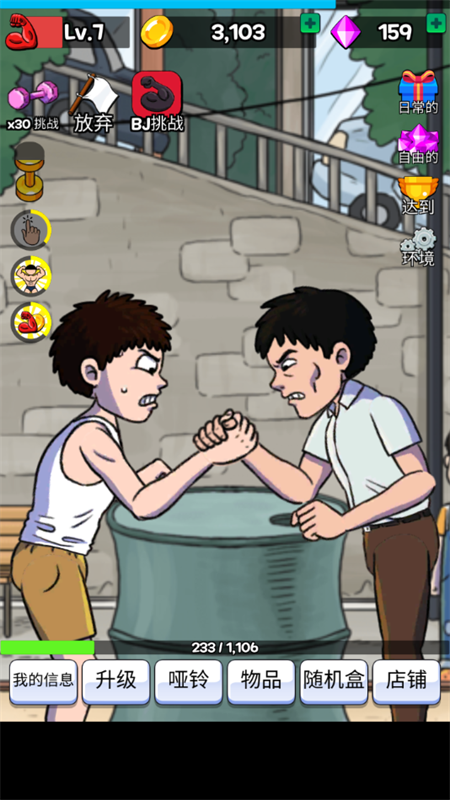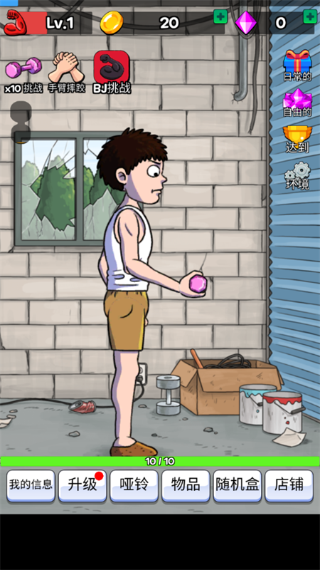 但是奈何玩家的整体身体素质太过于孱弱,玩家需要通过点击的方式进行个人锻炼
