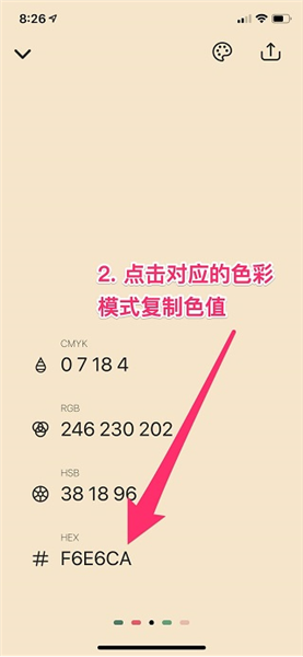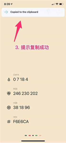 在你松开手指的瞬间,选定的颜色色值已经在剪贴板中复制好,你可以直接切换到绘图软件中,粘贴使用。