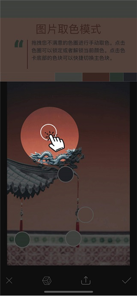 取色界面独创锁定和随机取色机制,可以帮助用户更轻松搭配出好看的配色;