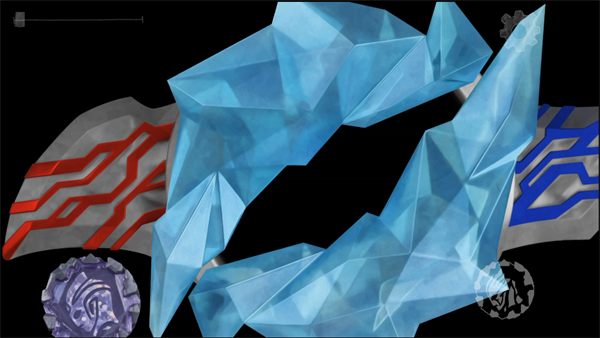 3、多样化特效:不同晶石插入后,中间水晶展开的显示屏呈现出各异的红蓝旋转光效,为每一次变身赋予独特的视觉冲击。