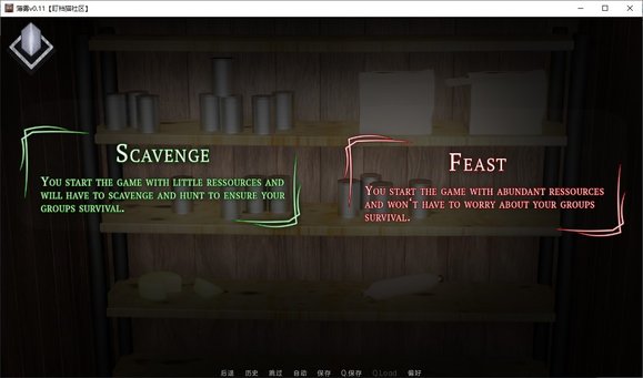 - SCAVENGE(拾荒):在游戏开始时,你的资源很少,你将不得不通过躲避和狩猎来确保你的团队生存。