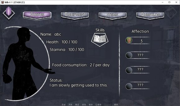 Stamina(耐力): 100/100。可通过Skills(技能)来提高。