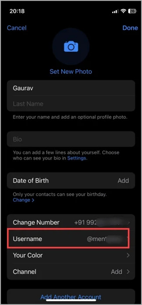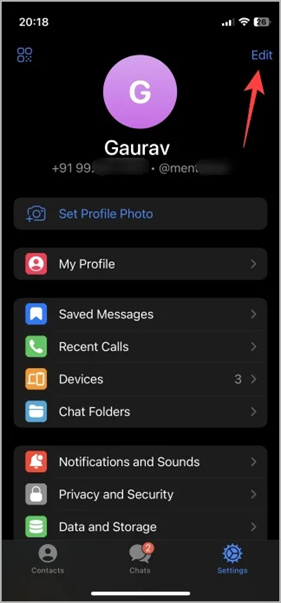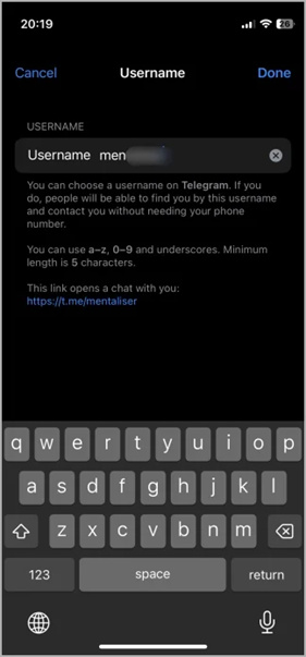 在 Telephone 应用程序中,点击底部的 “设置” 选项卡,在该页面中您可以查看您的 Telephone @username。如此一来,您的 Telephone 个人资料帐户链接即为https://t.me/username。