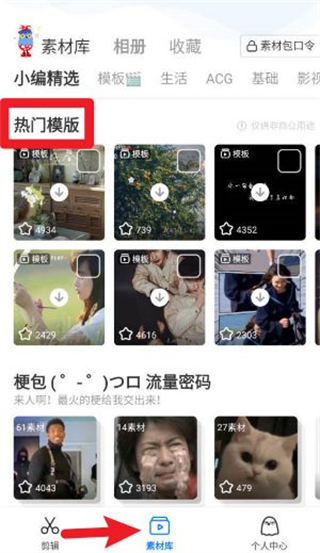 3、在素材库中还有各种热门模版,可以轻松制作同款热门视频。