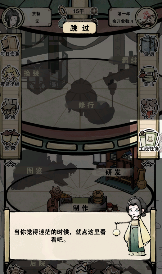 3、后院 在轮回茶肆游戏中可解锁茶场,水塘,林地,农田及副业(在装修-后院板块内购买解锁 新手任务有指导)前期除副业外都解锁