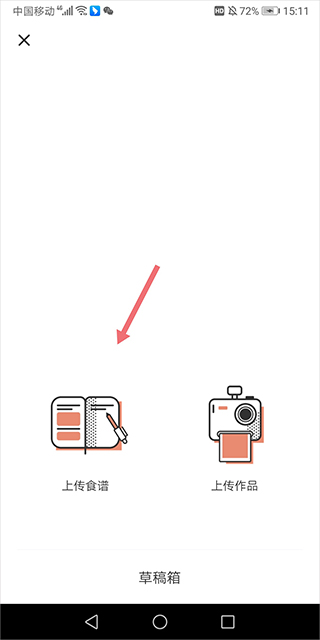 1、用户同样是进入到应用的【我】页面中进行上传,只不过现在是点击【上传食谱】