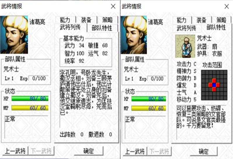 诸葛亮的统率高达92,而咒术师的防御成长是B,所以诸葛亮防御成长实际为A,这让本来脆皮的咒术师生存能力得到了提升,但他却是敌人,对玩家来说是不利的。