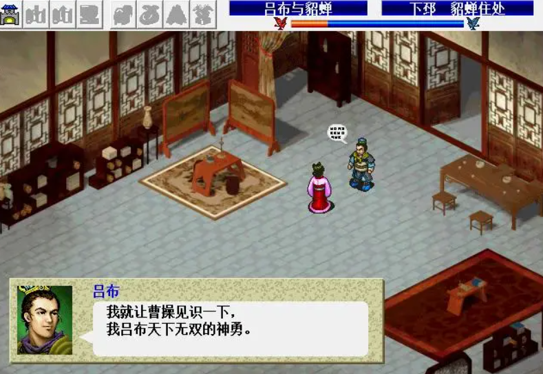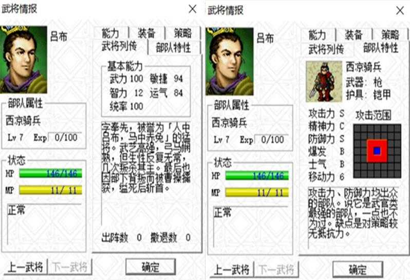 吕布也是整个游戏最大的敌人之一,前期让玩家吃尽苦头,尤其是第四关的董卓追击战,吕布有无敌之姿,随着游戏进行,我方的人员越来越多,随着文官的加入,吕布也渐渐构不成威胁了,而前期吕布之所以强,就是因为我方前期没文官,只有曹操勉强算是一个。