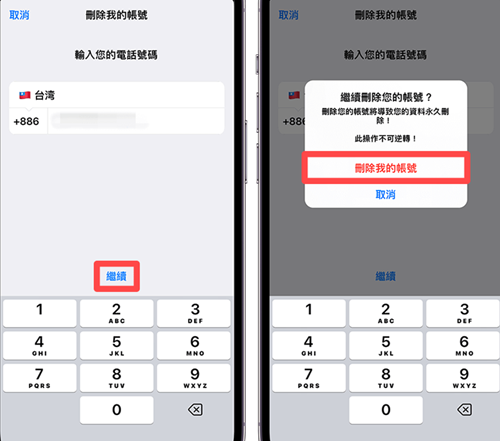 输入你的电话号码,台湾用户前面必须是 +886,后面号码直接从 9 开始填,例如:912345678,然后按一下「继续」。