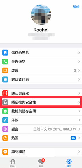 2、这一步将打开与隐私相关的设置页面,可对 Telegram 的隐私参数进行调整。