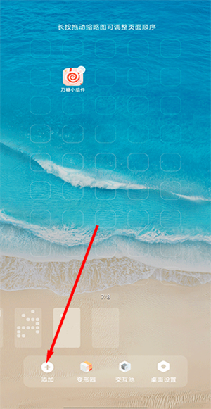 1、在“手机桌面”页面,长按桌面空白处或双指在桌面捏合,直接选择“添加”即可。