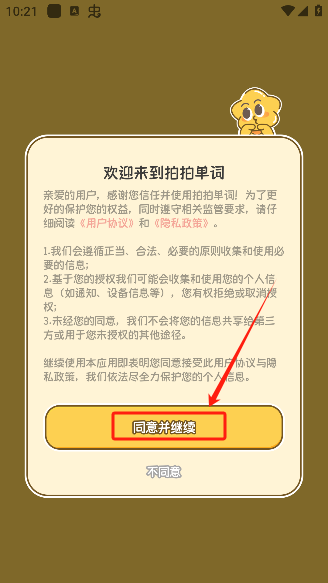 1、打开软件同意软件的相关隐私规定。